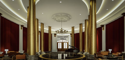 A virtual room that invites attendees to meet, talk, exchange information, and even listen to music